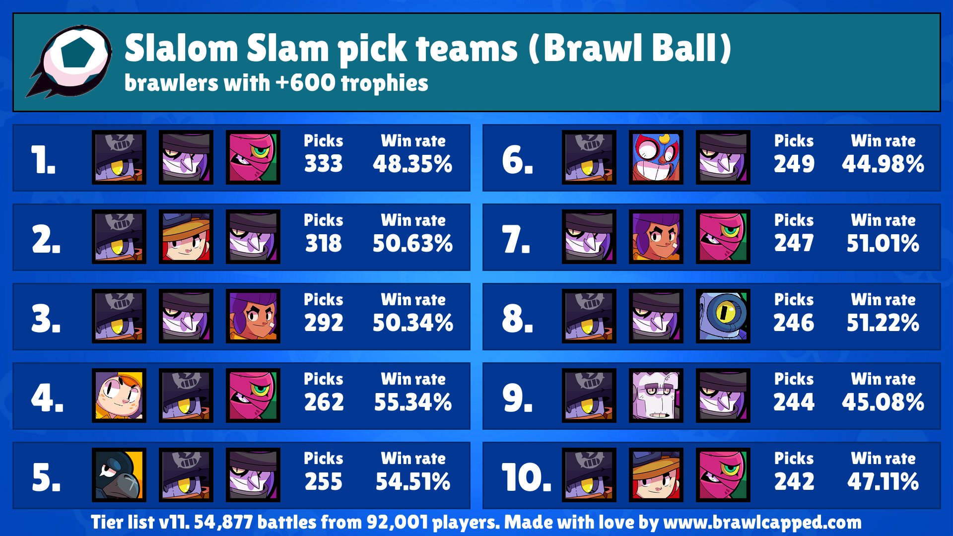 Brawl stars tier list v11. Read this brawl stars guide for the best tiered brawler list with ranking criteria including base statistics star power capability game mode effectiveness more. For this video 11 tier list pro collaborators used the competitive stats above 700 trophies to determine which brawlers are the best for every single mode in brawl stars at the competitive level. Tier list v11 for brawl stars kairostime brawl stats on android httpsbitly2hszokc brawl stats on ios httpsappleco2wfsgd6 support me with your. Brawl stars tier list with win rates pick rates and rankings. Brawl stars skins july 2020. Brawl stars 2020 template january.