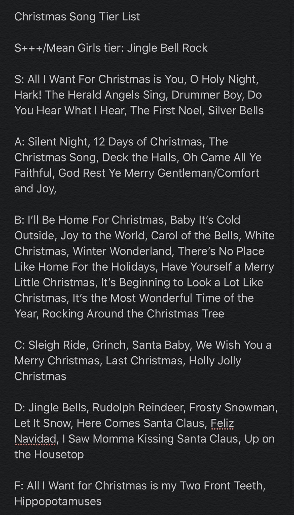 Christmas song tier list. Share template on twitter share template on facebook. Christmas songs tier list maker. 199 points 7 months ago. Use our tier list maker to generate your free tier list and share it with your friends. Natsunodon a rhythmic beat. 12 days of christmas all i want for christmas is you baby its cold outside underneath the christmas tree do you hear what i hear and many more.